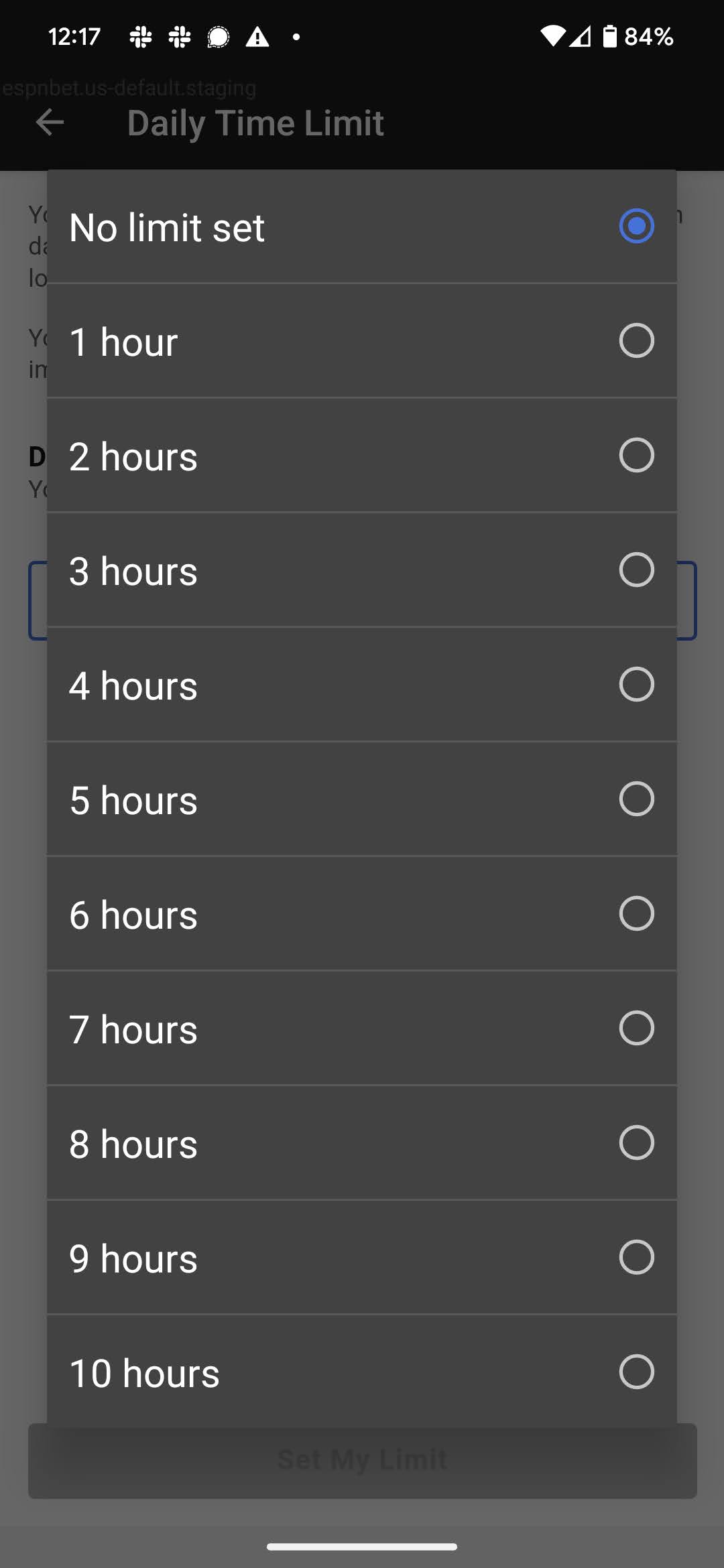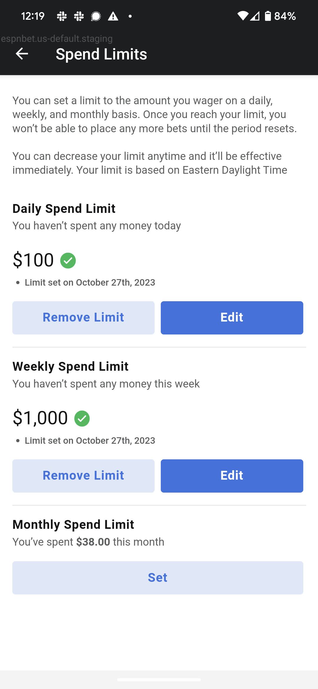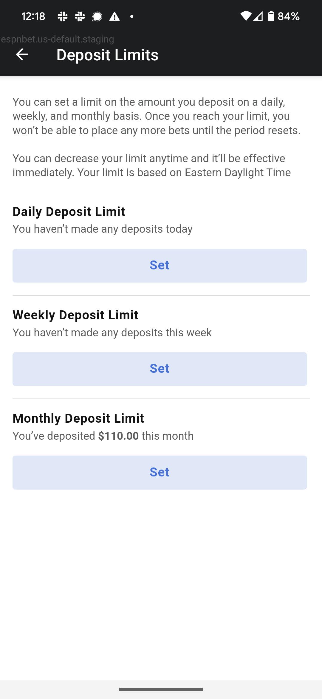 Daily Time Limit - Set a limit on the amount of time you spend on ESPN BET and Hollywood Casino per day. Once you hit your self-imposed daily time limit, you will be logged out and will no longer have access to ESPN BET and Hollywood Casino until it resets the following day.