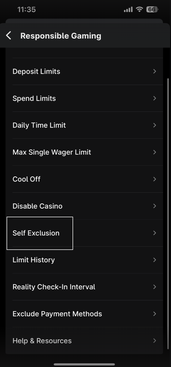 Self Exclusion - Responsible gaming is also knowing when to stop. You can take a break for extended period of time, varying based on location, from playing if you feel that setting limits isn't enough to control the time or money you are spending.